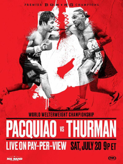 With the all time great boxing icon Manny Pacquiao set to face Yordenis Ugas in a WBA welterweight championship fight I decided to revisit his last performance. I missed this fight when it happened live as I am less tolerant of buying pay-per-view fights and I had struggled to find quality uploads of this online. Kudos to PBC for putting this fight up on YouTube in full length ahead of the fight this weekend. Unfortunately, tomorrow’s clash is not the fight we wanted but it is a pretty good substitute. I remember heading into this fight with Pacquiao and Thurman not really being sure what to expect. Thurman was the man at welterweight after Floyd Mayweather retired as he unified titles in beating Shawn Porter and Danny Garcia. After those fights he had a layoff, got married and was nearly knocked out by Josesito Lopez. However, he was still in his physical prime or at least very close and Pacquiao though on a good run after the Mayweather loss was forty years old and was showing signs of slowing down. This turned out to be a major victory for Pacquiao who secured the WBA welterweight title and proved the doubters wrong while giving a middle finger to father time. In this post I will lay out my thoughts after sitting down to watch all twelve rounds of this interesting and entertaining fight.